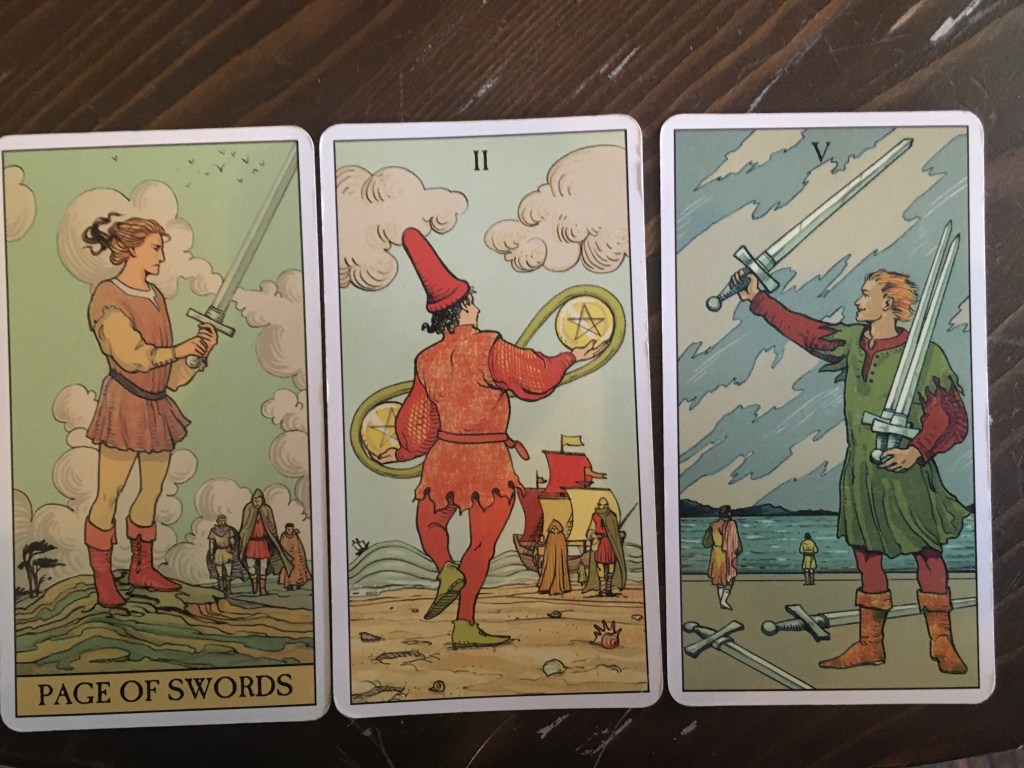 The page of swords is much the same. When we discover our truth, sometimes it’s hard to know what to do with it, once discovered. “Now what?”, the page asks. Well, the storm is brewing there as well. The people are rising to challenge the page. They are saying, “we know you have the truth, and we don’t like it. We are coming to challenge you, to drop your sword, and to forget about the truth.”….But once we have seen the truth, we cannot unsee it.